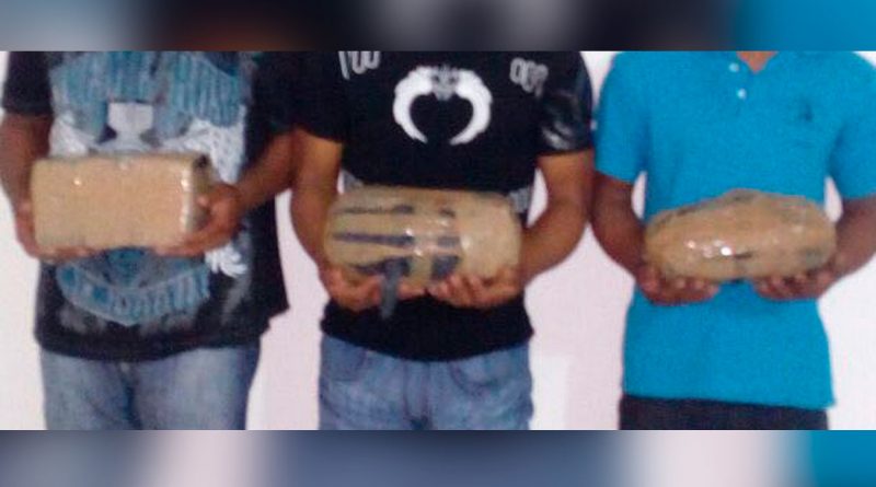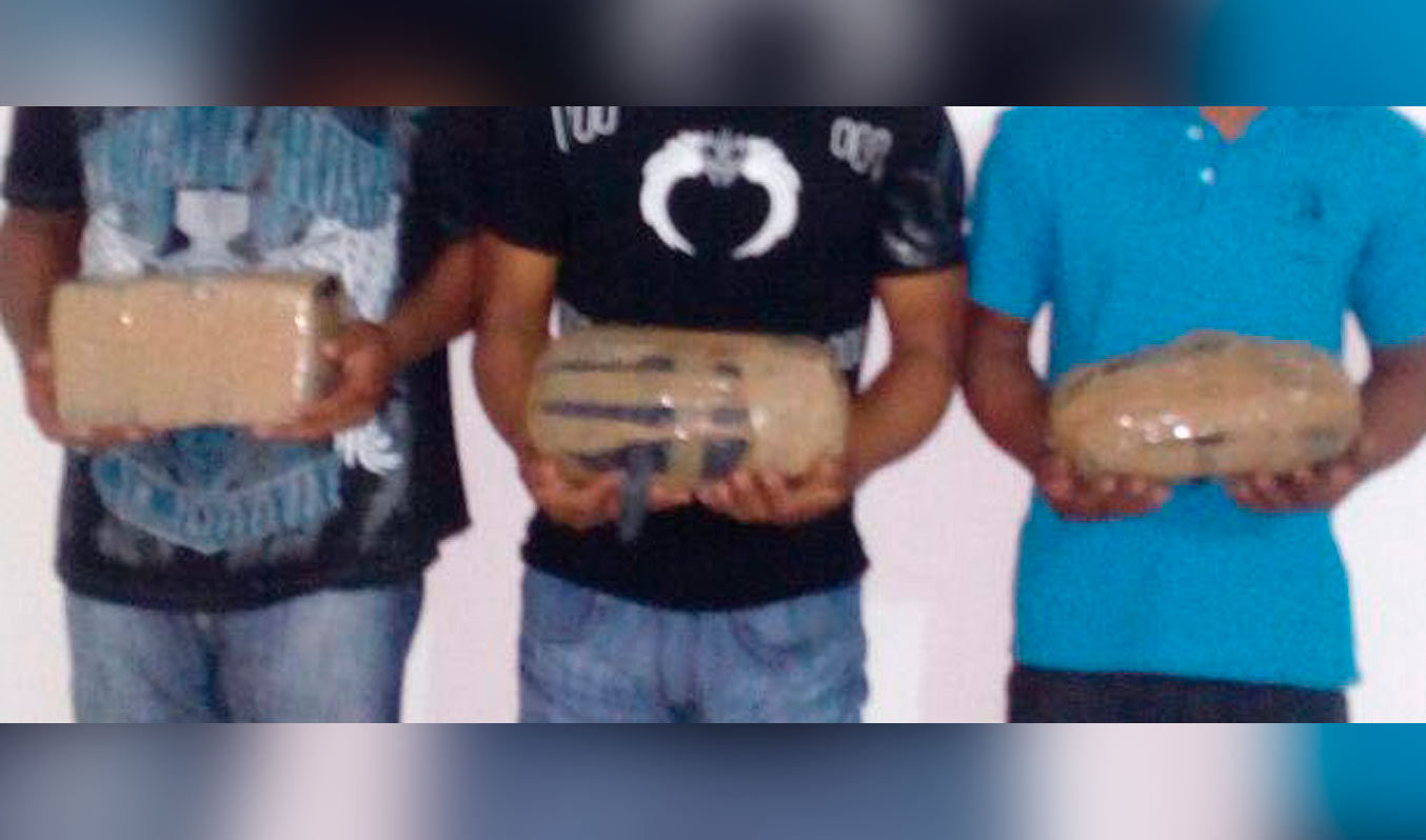 En el lugar se aplico el control preventivo de detención a Felipe “N” de 26 años, Emilio “N” de 27 y Tito “N” de 24 años de edad, a quienes se les aseguro tres paquetes confeccionados con cinta canela, los cuales contenían hierba verde y seca con las características propias de la marihuana, con un peso aproximado de dos kilogramos.